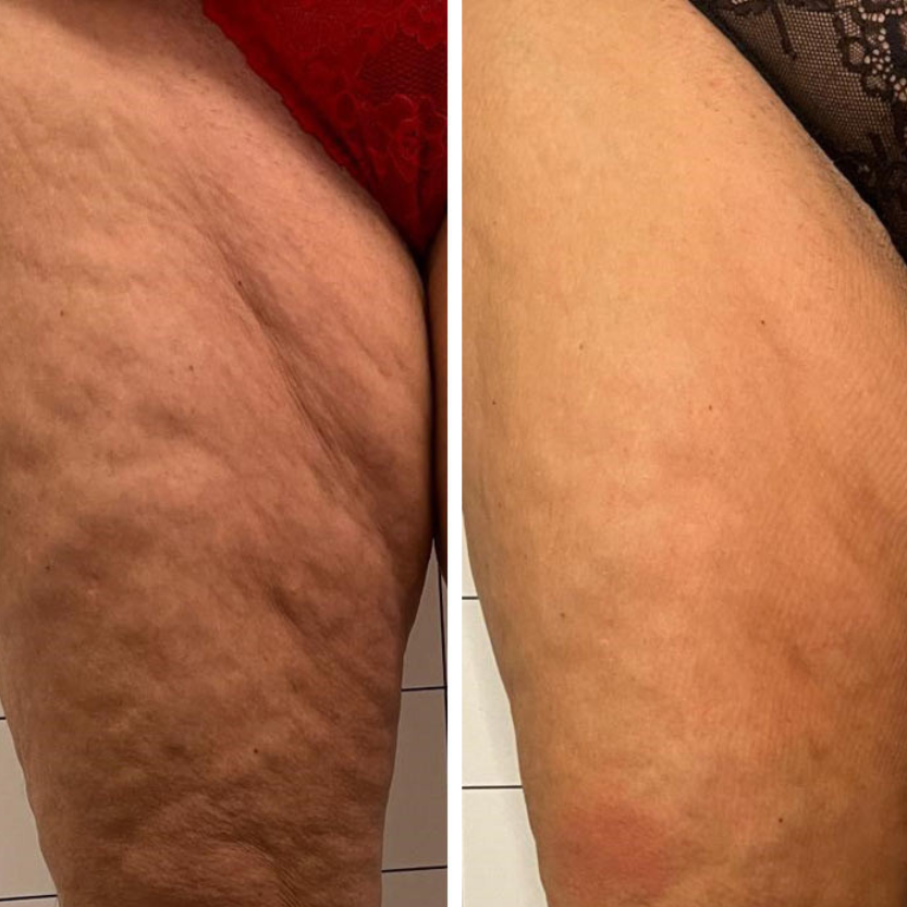 Refleja selectivamente el calor corporal y activa así la microcirculación. Esto favorece el metabolismo de la piel y aporta una piel visiblemente más lisa —sin cremas ni aparatos.